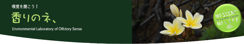 香りを楽しむ「感香旅行」のすすめ、鼻を使った遊びや暮らしなど、嗅ぐ事に焦点を当てた提案を行っています。嗅感覚を開く事で、五感全体が活性化します。「香りのネ、」の「ネ」は、フランス語で「鼻」の意味です。花など香りと、それらを嗅ぐ方の鼻、両方をまとめた造語です。(運営:香りの環境研究所)![]()