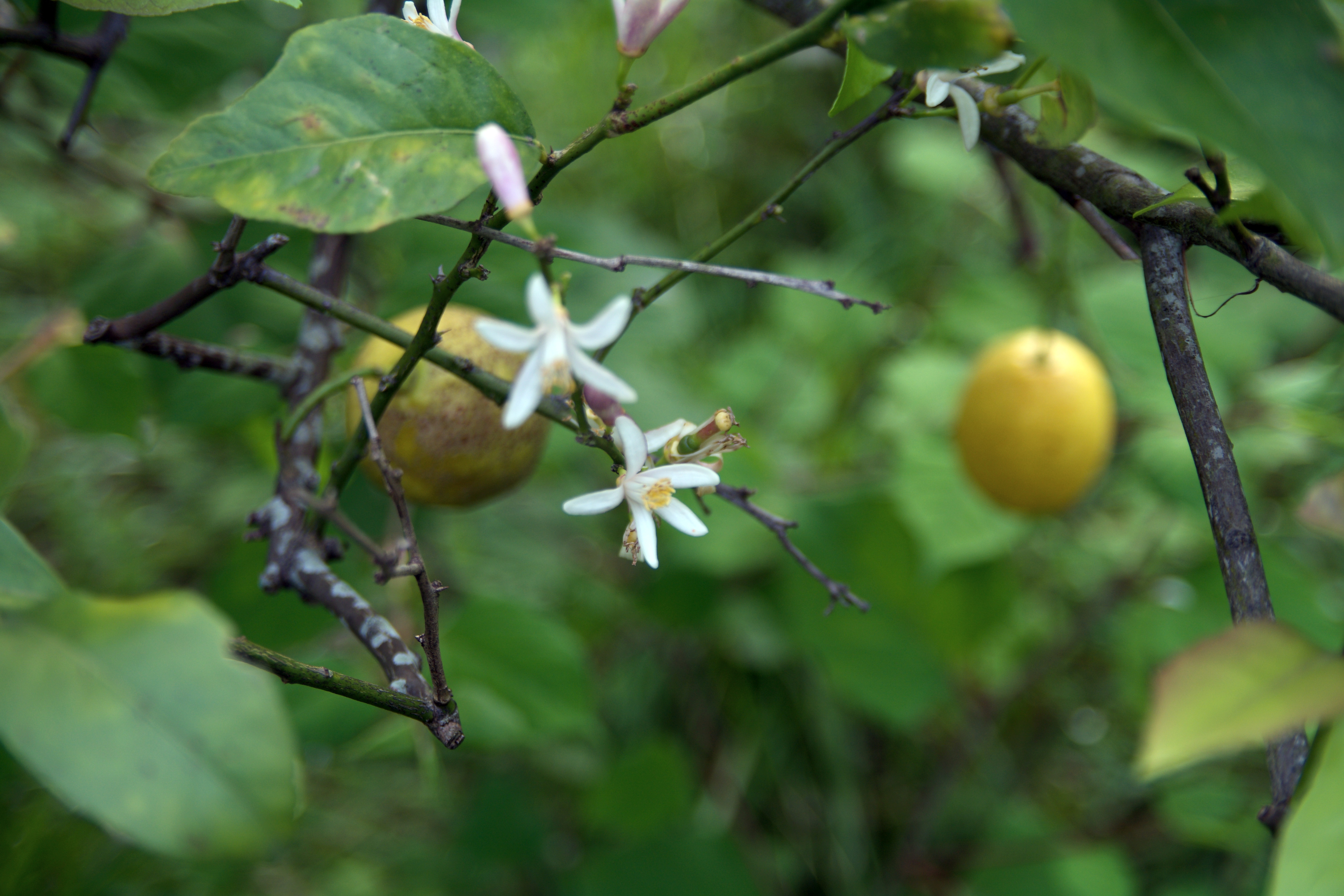 花の季節は5月中旬。温州や夏みかんなどの蜜柑類よりも若干遅い時期に開花します。花の香もさることながら無農薬レモンそのものは年中が収穫期です。枝に実った状態で1年ほどそのままで必要時にもぎ取り出荷するようです。なので花と実生を同時に見られるのも生口島の特徴。土産の生レモンや絶品レモンケーキ、ジェラート、レモン鍋など様々なレモングルメも揃っています。