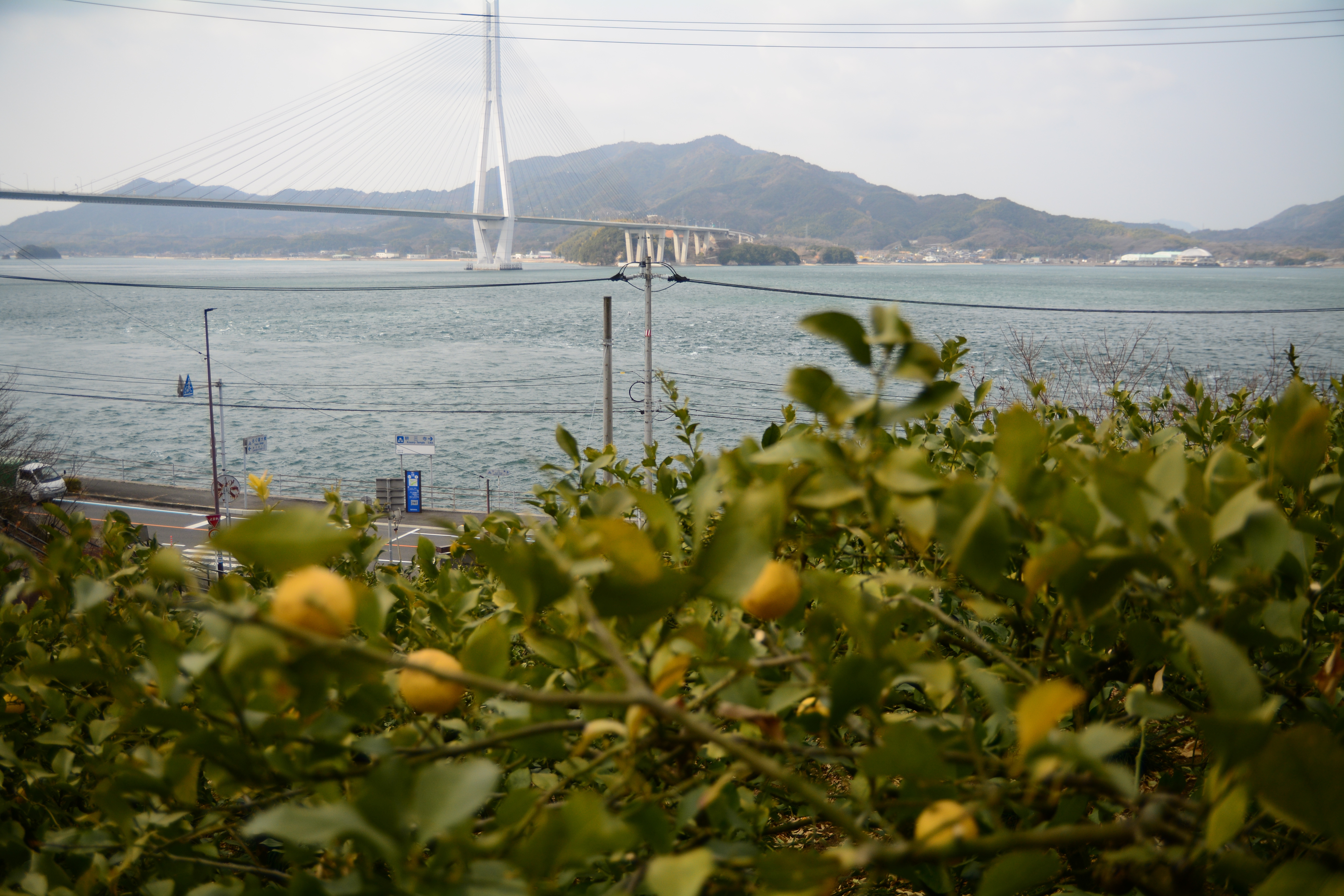 瀬戸内の名物でもある多島美を優美な橋を込みで楽しめるビューイングスポットでもあります。レモン畑の大半は島の南半分です。縦断道路もあるので効率よくポイントを探せます。できればレモン谷以外でも海とレモンの花の美しいポイントを探して楽しみましょう。