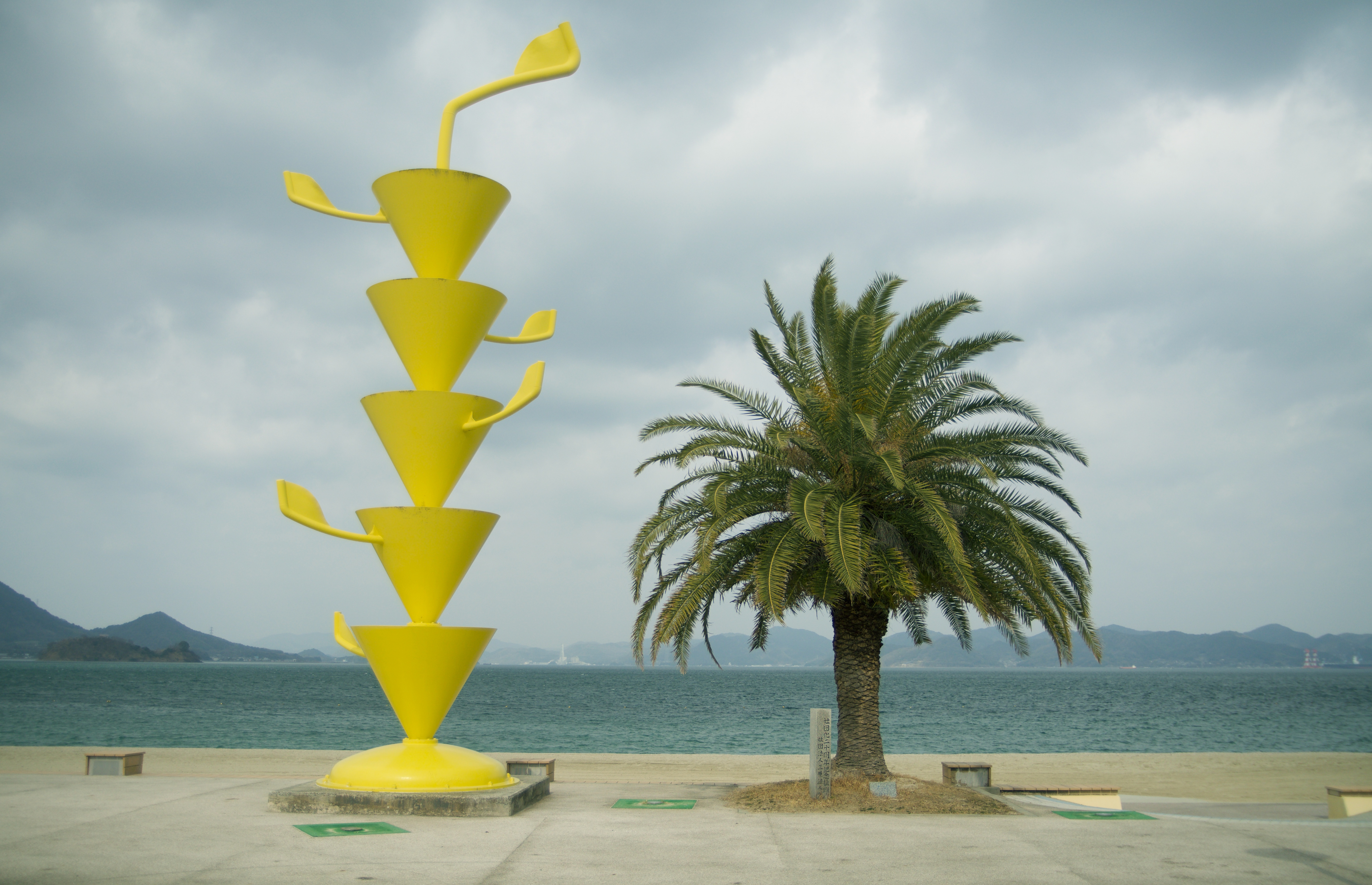 参道を抜けると観光案内所、レンタサイクル、耕三寺、平山郁夫美術館があります。瀬戸内はアートで有名ですが、岡山県と香川県で開催されている瀬戸内国際芸術祭を起点に瀬戸内海各地でアートを取り入れた展示や建築などが豊富です。生口島でも随所に屋外アートの展示がされているので探し歩くのも楽しいです。