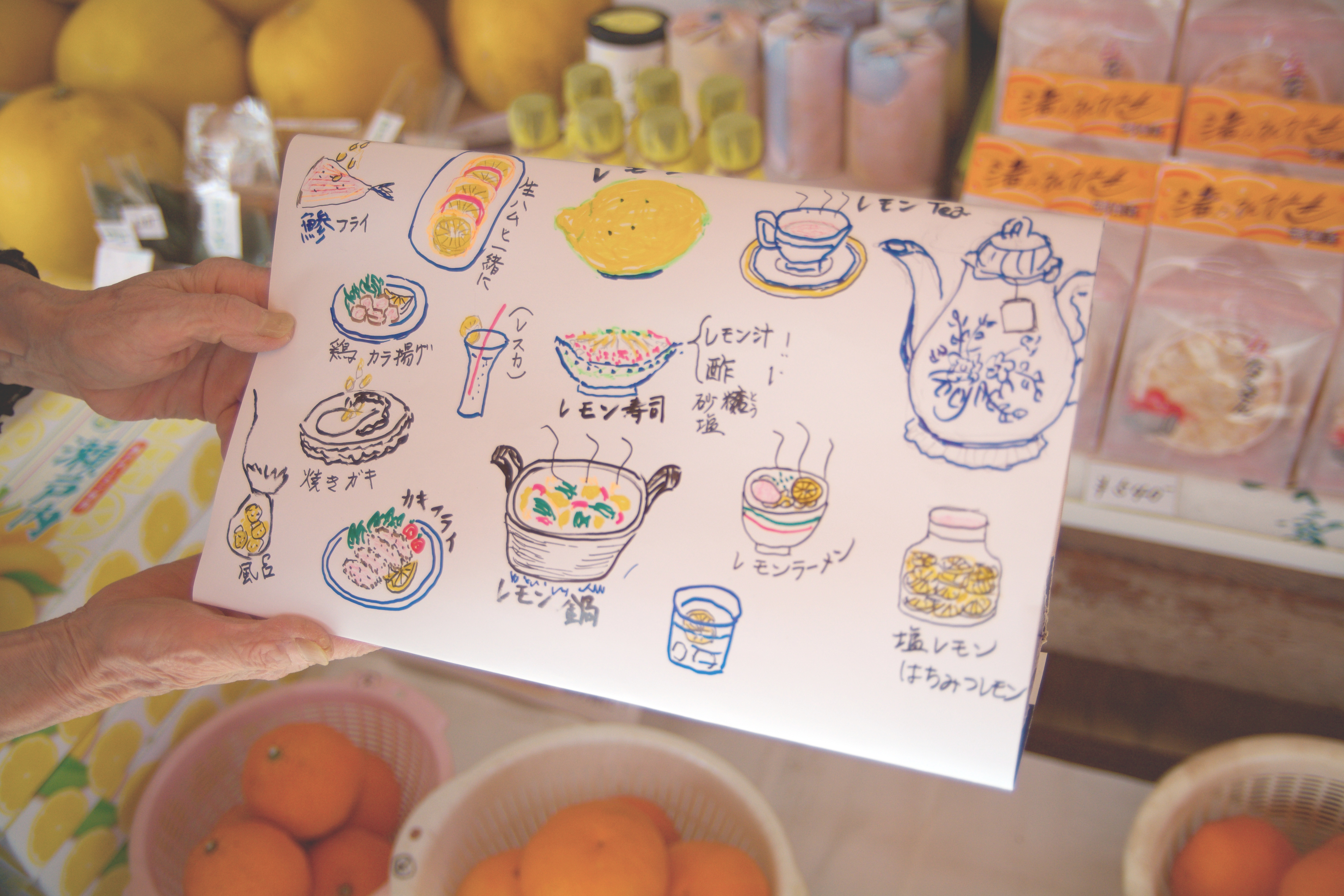 レモン農家さんは、レモンは実や果汁よりも皮をぜひ使ってくださいとのこと。果物店でもレモンレシピを教えてくれる店もあります。名物のレモン鍋にチャレンジしてみるのも楽しいです。