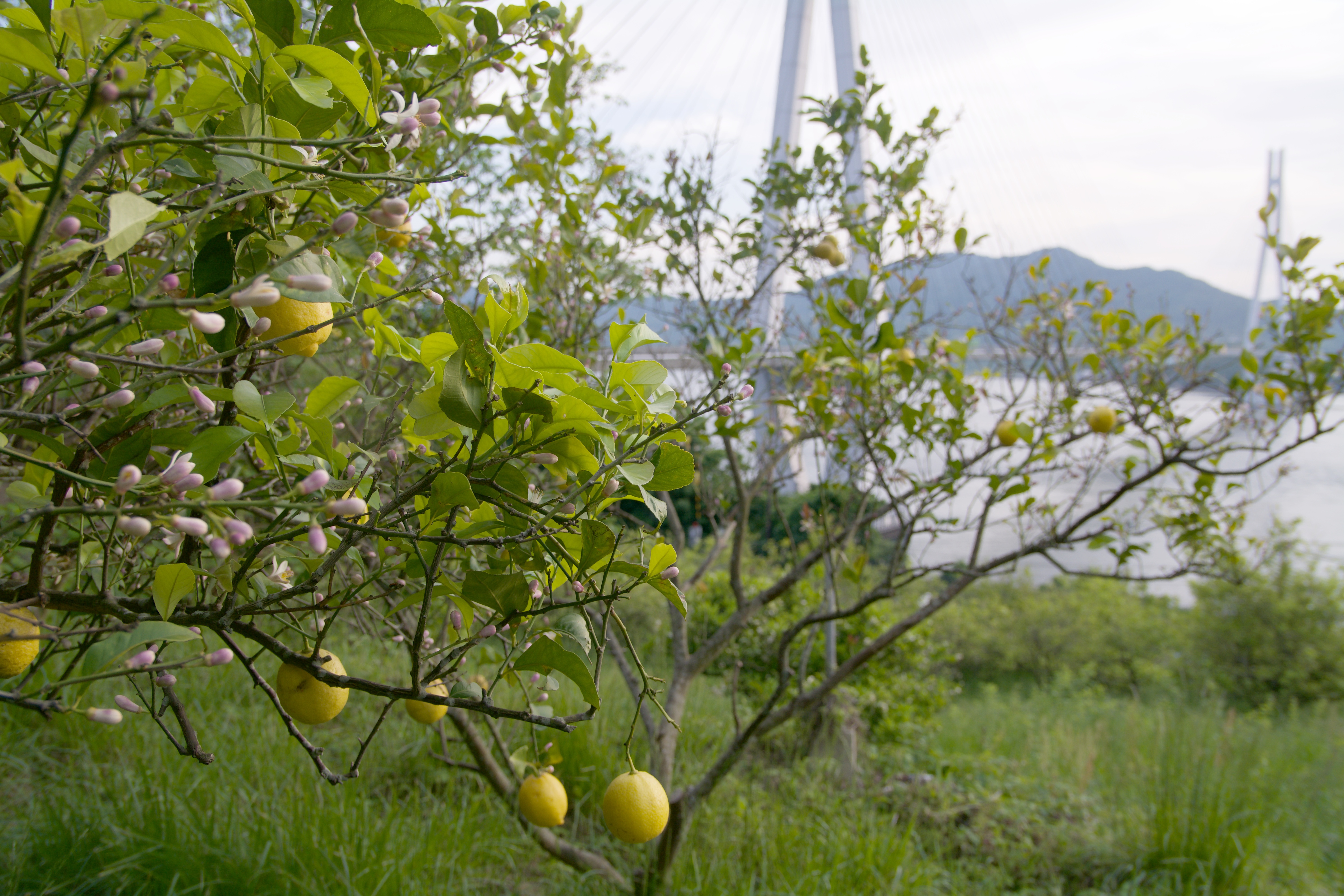 生口島のなかでも風光明媚なレモン谷と呼ばれている地区は、生口島と大三島をつなぐ世界有数の長さを誇る斜張橋の袂の傾斜農地辺りに広がっています。