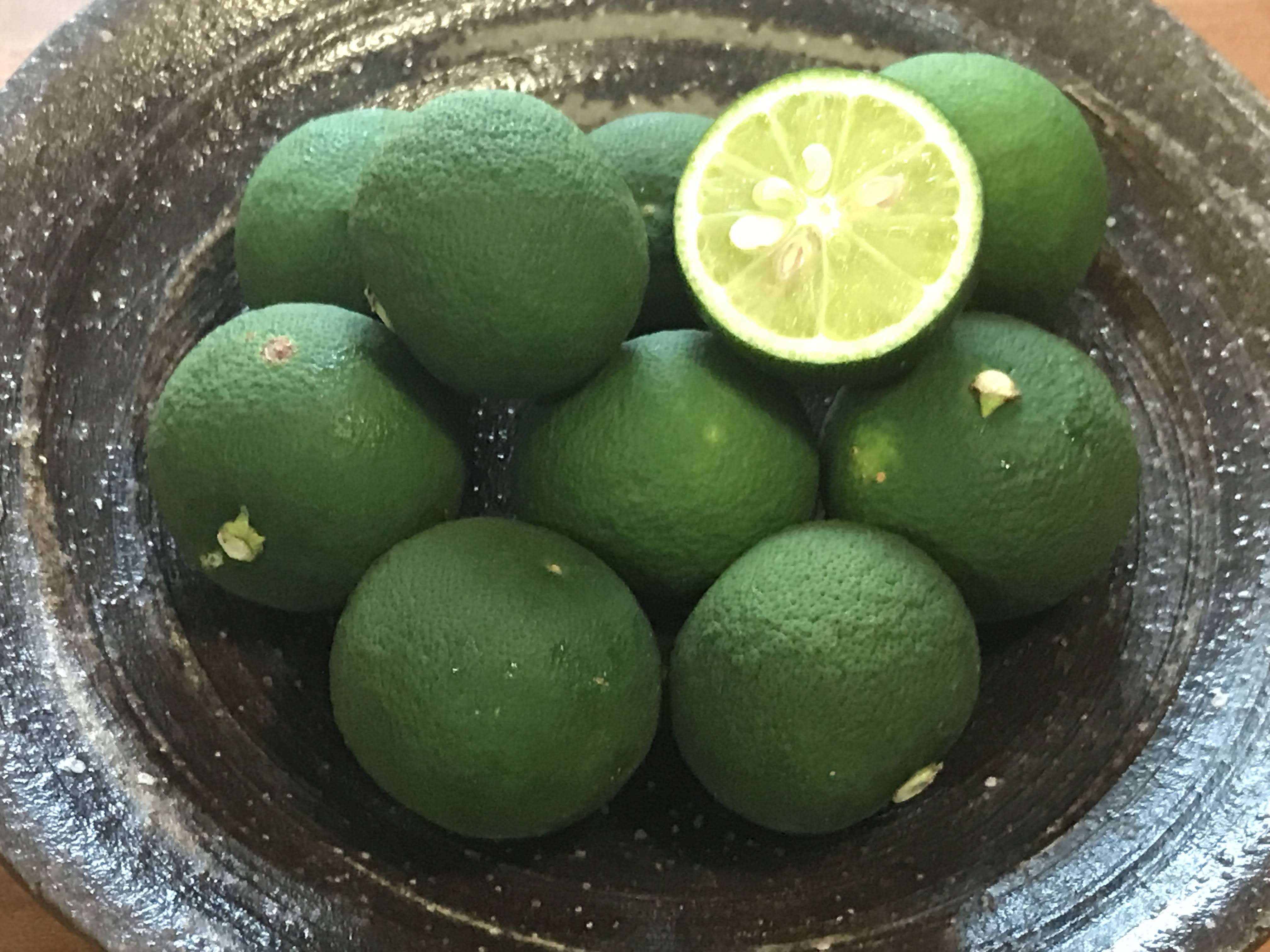 ピンポン玉相当の酢橘は秋の料理に欠かせない薬味です。特に秋刀魚の塩焼きには欠かせません。お刺身や、お寿司、などを季節の料理や寿司などに重宝がられています。果汁はレモンよりもビタミンC含有率が高くキリッとした酸味。香りは濃厚、果皮は、ビターな味わい。地元四国ではさまざまなシーンで好まれていますが、路地栽培の旬がくると先ずは酢橘うどんを楽しむのが定番です。