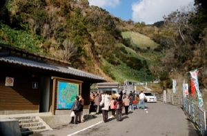 斜面の頂上には展望スペースが有り、紀伊水道に浮かぶ沼島や、遠く和歌山や太平洋を望めます。風に当たりながら、水仙の語りかけるような香りをしばし聞いてみるのも、冬ならではの楽しみです。