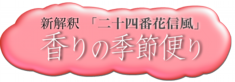 新春から晩春までの花の季節に、一風吹く毎に香りが、季節を知らせたという奥ゆかしい時代の風流です。春に限らず、一年を通して、まだまだ香る風がありますので、新解釈として再編いたしました。
